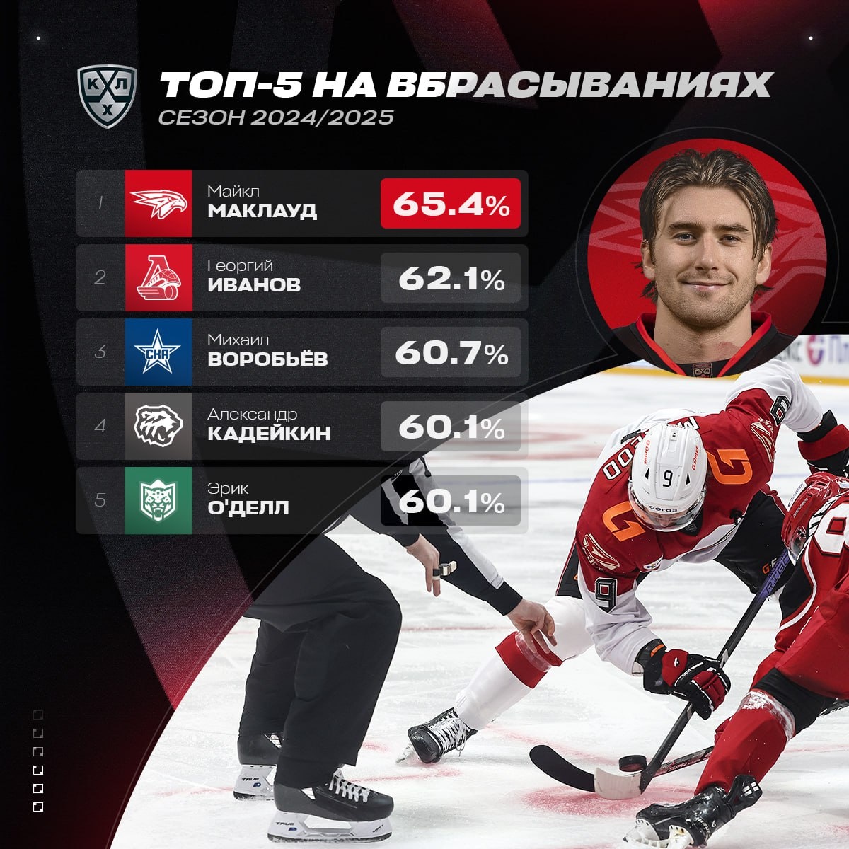Чем так хорош Майкл Маклауд 🦅? Например, игрой на точке: в прошлом сезоне он был лучшим в лиге по проценту выигранных вбрасываний