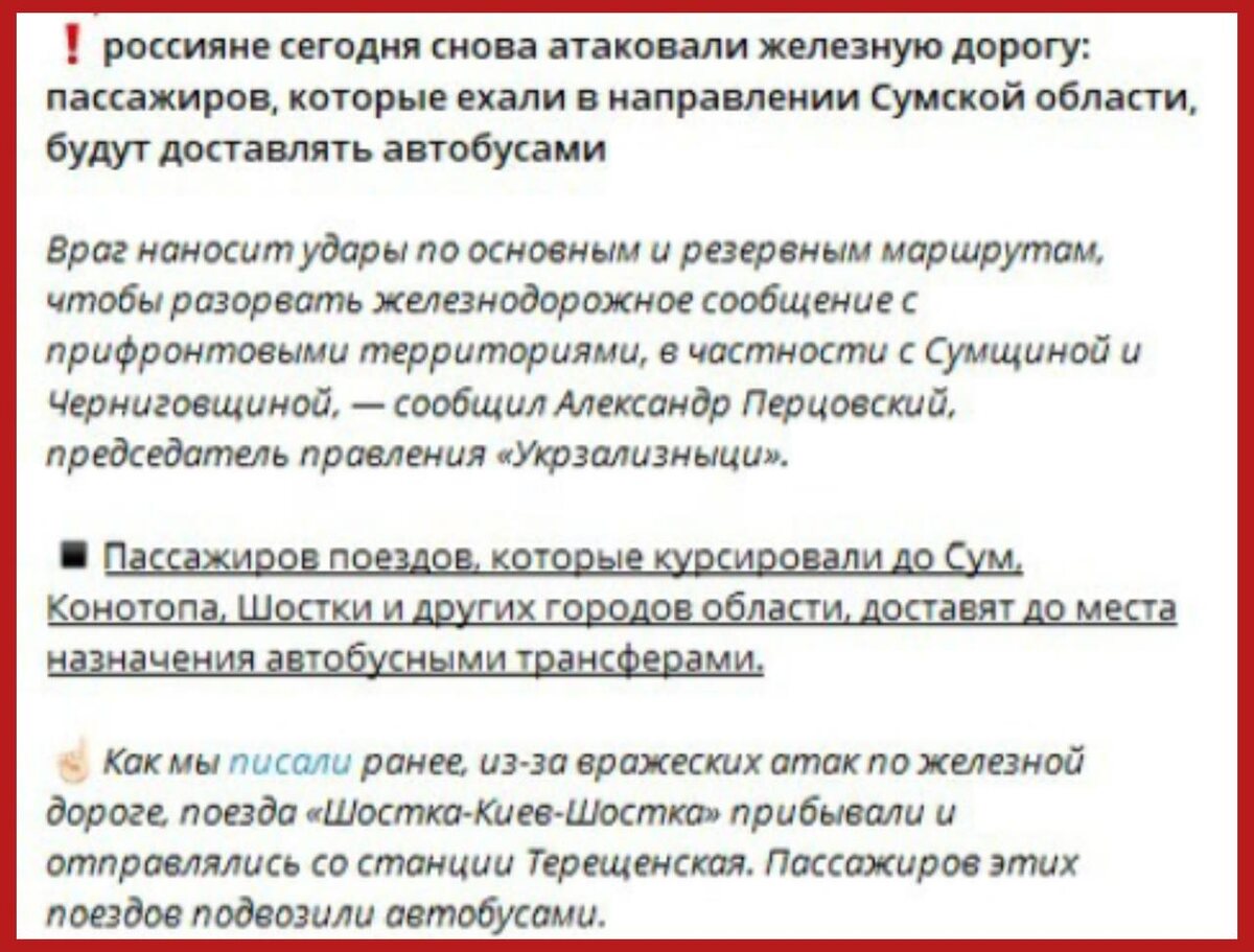 π₯Π£Π΄Π°ΡΠ°ΠΌΠΈ ΠΏΠΎ ΠΆΠ΅Π»Π΅Π·Π½ΠΎΠΉ Π΄ΠΎΡΠΎΠ³Π΅ ΡΠ°Π·ΠΎΡΠ²Π°Π½ΠΎ ΡΠΎΠΎΠ±ΡΠ΅Π½ΠΈΠ΅ Ρ ΠΏΡΠΈΡΡΠΎΠ½ΡΠΎΠ²ΡΠΌΠΈ ΡΠ΅ΡΡΠΈΡΠΎΡΠΈΡΠΌΠΈ β Π² ΡΠ°ΡΡΠ½ΠΎΡΡΠΈ Ρ Π‘ΡΠΌΡΠΊΠΎΠΉ ΠΈ Π§Π΅ΡΠ½ΠΈΠ³ΠΎΠ²ΡΠΊΠΎΠΉ ΠΎΠ±Π»Π°ΡΡΡΠΌΠΈ, ΠΏΠΈΡΠ΅Ρ Π³Π»Π°Π²Π°