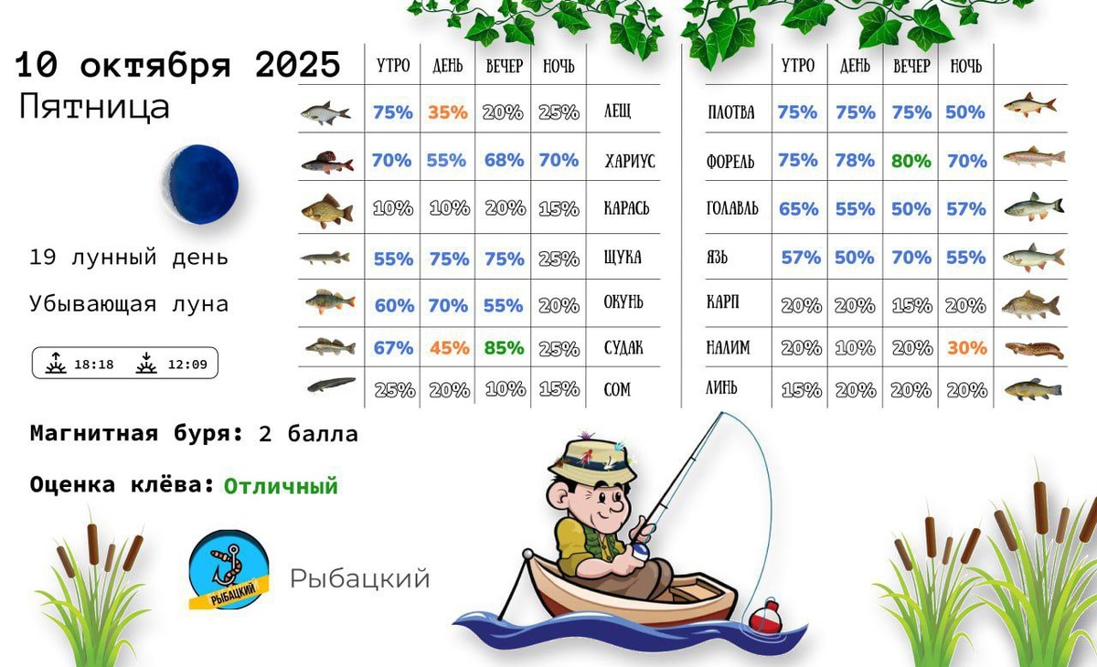Прогноз клёва на 10 октября по фазе и состоянию луны