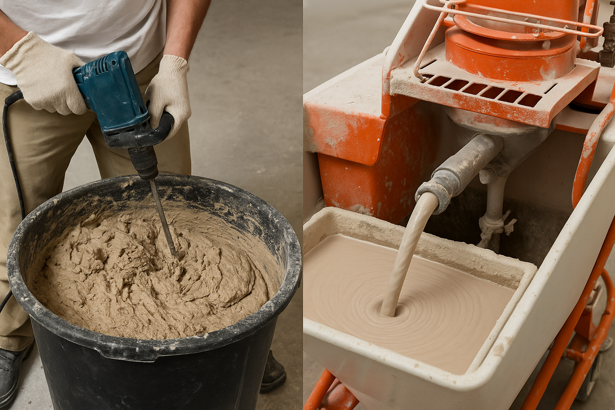Главное различие между ручным и механизированным замесом заключается в стабильности и качестве готового раствора. От этого напрямую зависит прочность, однородность и долговечность штукатурного покрытия. Ручной замес Механизированный замес (в штукатурной станции) Вывод: