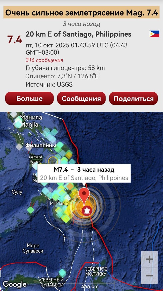 В ответ на пост Согласно прогнозу от 6 октября произошло очень сильное землетрясение М7.4 по Филиппинским островам. По VLF план перевыполнен. ====== According to the forecast of October 6, a very strong M7.4 earthquake struck the Philippine Islands.
