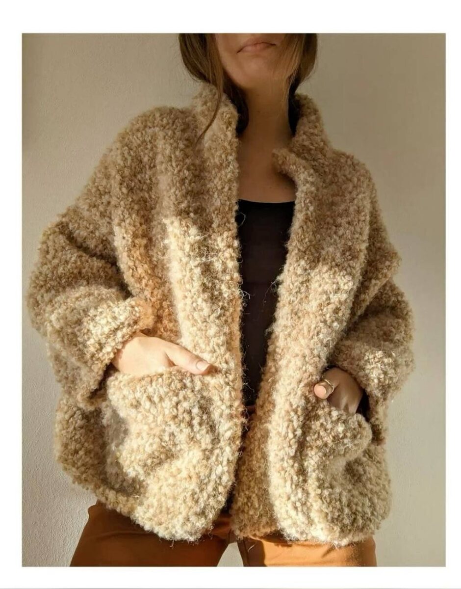 Ещё одна любовь из свежего Filati №70 — уютнейший жакет из буклированной пряжи