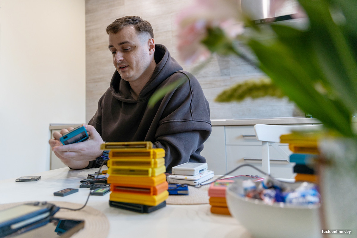 Большая ценность в том, что все девайсы рабочие, во все можно поиграть. Коллекционер достает картридж от Game Boy, чтобы продемонстрировать это, но игра не запускается с первого раза. Тогда Андрей совершает действие, которое вряд ли поймут молодые люди: резко и сильно дует на область контактов картриджа. Затем вставляет его в консоль — и игра запускается под аккомпанемент восьмибитной музыки. Все дело в пыли, которая оседает на контактах картриджа и нарушает соединение.