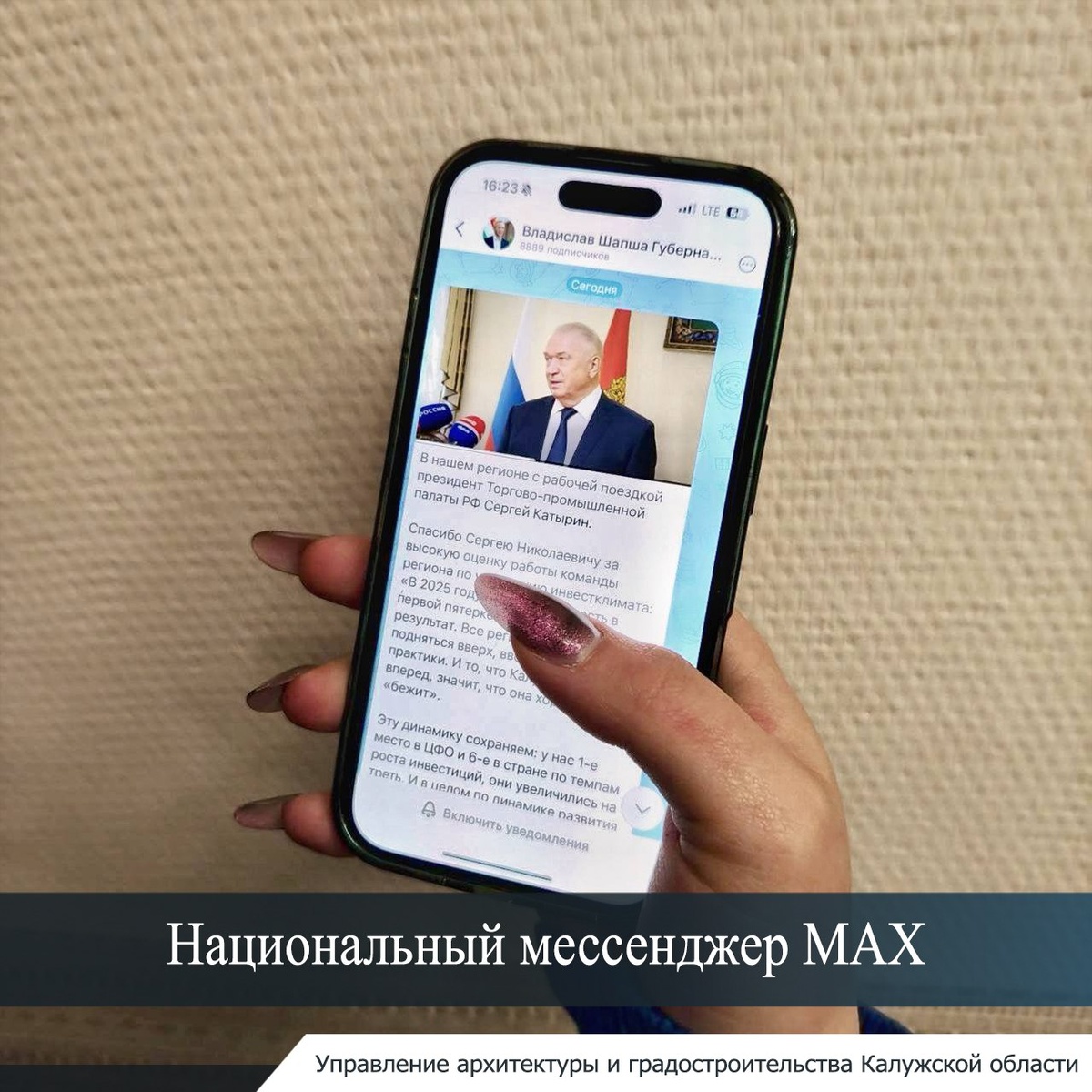 Одним из первых в стране свой канал в мессенджере открыл глава региона Владислав Шапша https://max.ru/Shapsha_VV . Есть в MAX и канал Правительства Калужской области https://max.ru/pravitelstvo40.