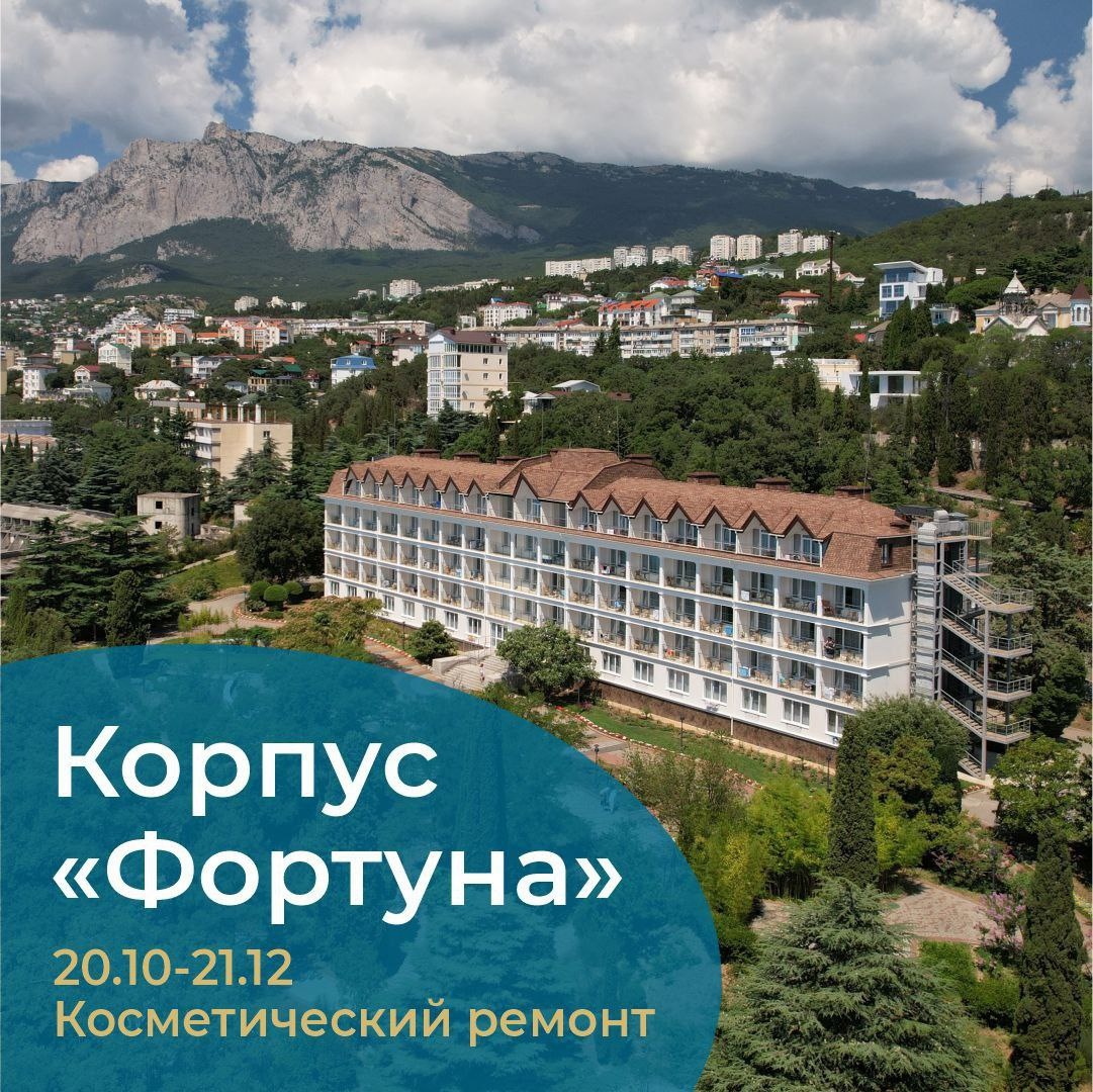 Дорогие гости! Мы продолжаем заботиться о вашем комфорте 😊 С 20 октября по 21 декабря в корпусе «Фортуна» пройдёт косметический ремонт. Работы будут выполняться поэтапно, чтобы ваш отдых оставался максимально комфортным. Приносим извинения за возможные неудобства и благодарим за понимание 🩵
