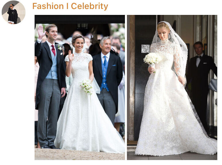 Свадебный образ невесты — это своеобразное отражение ее внутреннего мира, и повторяться тут нельзя. Но, как оказалось, некоторые звездные красавицы не смогли устоять перед идеями, уже воплощенными другими невестами, и их подвенечные платья подозрительно похожи. Пиппа Миддлтон, младшая сестра принцессы Уэльской, и Никки Хилтон, младшая сестра Пэрис, выходили замуж в очень похожих платьях. Кружева ручной работы, ворот-стойка, целомудренно прикрытое декольте — детали, которые делают образ элегантным и аристократичным. Что ж, девушек легко понять: Пиппа, наверное, мечтала побыть принцессой, хотя бы на собственной свадьбе, да и Никки хотелось заретушировать свой имидж тусовщицы 2000-х сдержанной аристократичностью стиля. Утверждая дизайн своих свадебных нарядов, Хейли Бибер (тогда еще Болдуин) и Никола Пельтц (без приставки «Бекхэм»), не смогли устоять перед длинными кружевными перчатками. Эта деталь у них практически идентична. А может, Хейли по-дружески одолжила перчатки Николе? Вроде бы