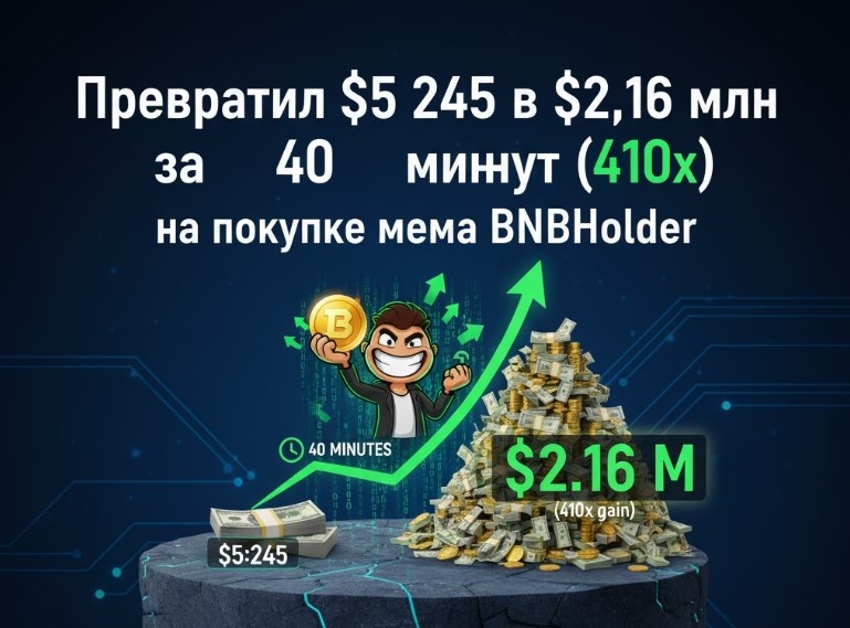 История, которая взорвала крипто-сообщество: трейдер вложил всего 4 BNB (~$5 245) в новый мем-токен BNBHolder, а уже через 40 минут его портфель оценивался в $2,16 млн. 🔹 По данным Lookonchain и Cryptopolitan, один адрес на BNB Chain купил 41,11 млн токенов BNBHolder за 4 BNB.