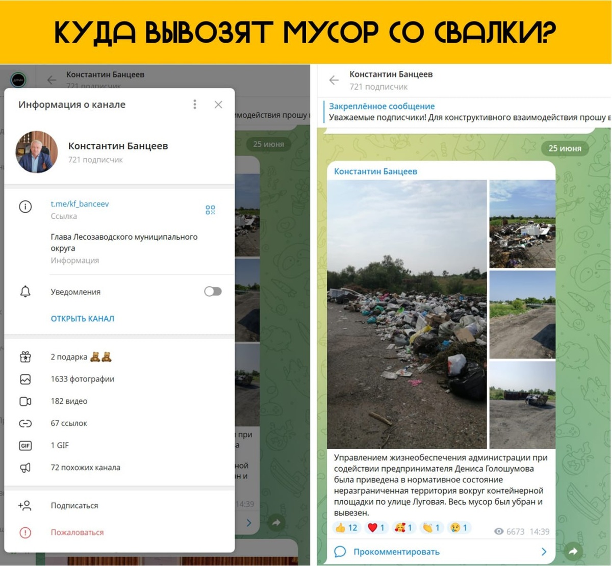 В ответ на пост ЭКО-СКАНДАЛ В ЛЕСОЗАВОДСКЕ: СВАЛКИ ПЕРЕВОЗЯТ С МЕСТА НА МЕСТО В июне 2025 года глава Лесозаводского муниципального округа К.Ф. Банцеев на своём официальном тг-канале сообщил об уборке свалки на ул. Луговой силами ИП Голошумова Д.П. Это стало началом истории с непрозрачными закупками, возможными махинациями и причинением вреда окружающей среде. Хронология событий: Запрос в администрацию ЛМО (28.07.2025) Запросил копию муниципального контракта, документы обоснования закупки у единственного поставщика, акты выполненных работ и документы об утилизации отходов. Ответ администрации ЛМО (31.07.2025) Вполне ожидаемо в предоставлении документов мне отказали, сославшись на защиту персональных данных ИП Голошумова, скрыв тем самым детали контракта и подтверждающие документы. Обращение в прокуратуру (28.07.2025) Были заданы вопросы о законности закупки без торгов, наличии у подрядчика лицензии и законности утилизации отходов. Ответ прокуратуры (15.08.2025) Нарушений не найде