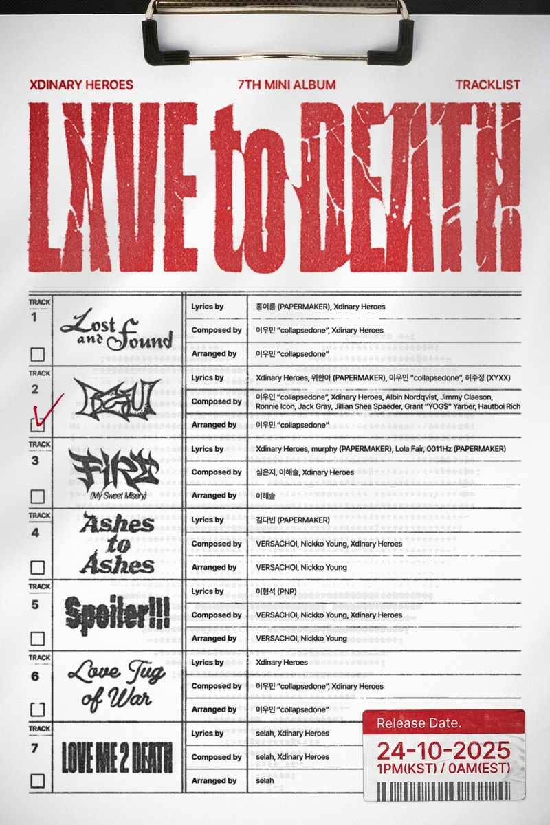 Прошло почти семь месяцев тишины, и теперь Xdinary Heroes (엑сди너ри Хироуз) снова штурмуют чарты! Агентство JYP Entertainment (Джей Уай Пи Энтертейнмент) 10 октября официально подтвердило камбэк группы, опубликовав в соцсетях треклист нового мини-альбома Love to Death (Любовь до смерти).