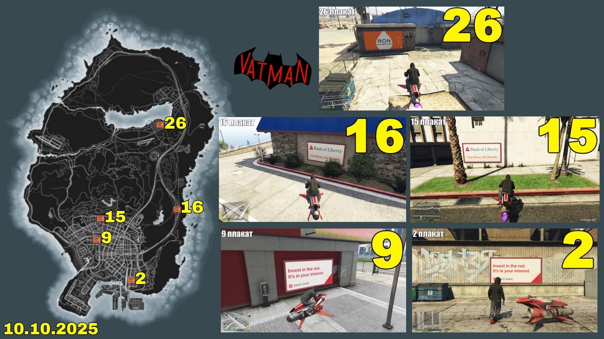 Расположение плакатов в GTA Online на сегодня (10 октября)🍂