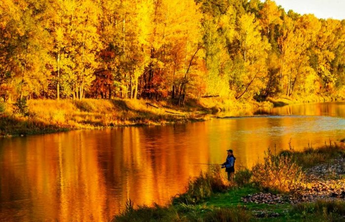 Осенью рыба вначале питается в местах, богатых поникающими водорослями, собирая здесь “урожай” семян, личинок и водных насекомых, лишившихся укрытий. На реках поиски проще. Здесь помогают линии берегов, следы течений и цвет воды, которые указывают на глубину водоемов. Небольшие реки обычно вьются по пойме, образуя излучины, заливы и старицы. У вогнутых берегов речных излучин глубины всегда наибольшие, здесь образуются обрывы — яры, а у выпуклых — отмели. Узкие места с тихим и несильным течением глубже, чем широкие. Мелкие места с быстрым течением называются перекатами. На перекате бывает обычно глубокое место — “корыто”, которое легко определить по более темному цвету воды. Ниже перекатов часто образуются глубокие ямы — омуты, которые облюбовывают крупная рыба и хищники. Прямые или слегка прогнутые участки реки между перекатами называются плесами, где течение всегда слабее, чем на перекатах или у Яров. Глубина плеса чаще всего равномерно возрастает от берегов к середине реки и бывает н