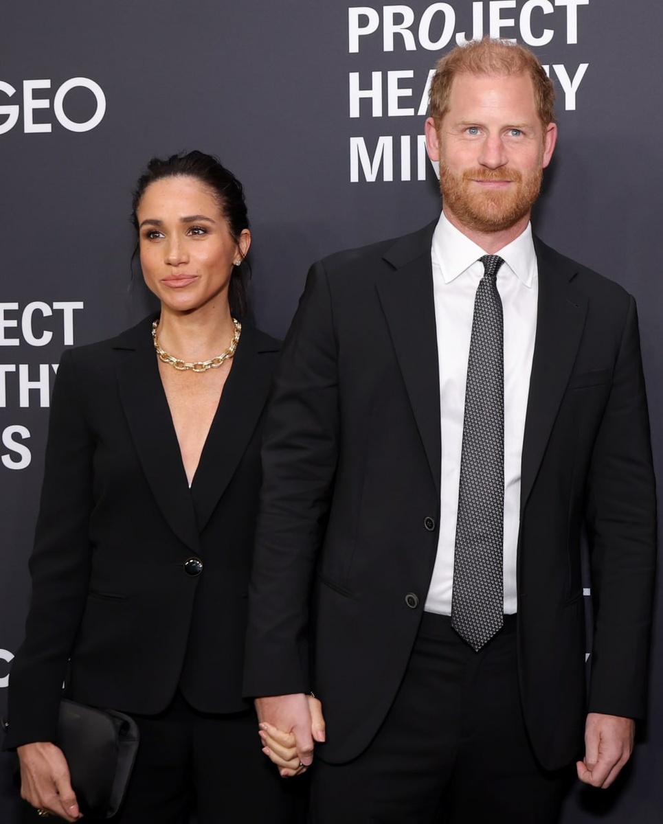 Жакет на голое тело и золотой "обвес": Меган Маркл и принц Гарри вышли в свет в Нью-Йорке