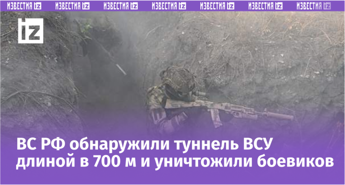 Вооруженные силы (ВС) РФ нашли подземный туннель, длина которого составляет около 700 м. Его вырыли украинские боевики через всю лесополосу на константиновском направлении Донецкой Народной Республики (ДНР). Об этом 10 октября рассказал командир расчета беспилотников Южного военного округа, действующего в интересах группировки войск «Центр», с позывным Дава. Подробнее — в материале на сайте «Известий». «В одной посадке у них был туннель почти во всю посадку. Туннель был метров 700. Если посадить туда пулеметчика, то противник может сдерживать «накат» (атаку. — Ред.) достаточно долго. Плюс они по этим посадкам по этим туннелям могут перемещаться», — рассказал он «РИА Новости». По его словам, обнаружить туннель и украинских боевиков было довольно сложно с помощью беспилотных летательных аппаратов (БПЛА), так как передвижение противника было скрыто. При этом командир уточнил, что противник был уничтожен. Ранее, 8 октября, стало известно, что российские военные в Сумской области ликвидиро