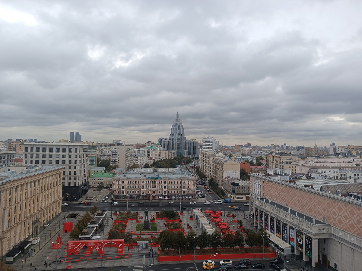 На 13 этаже гостиницы "Пекин" (сразу за Маяковским) расположен ресторан "Облако", и у него на крыше отличная открытая терраса. Правда, работает она только в тёплое время года. Нам повезло, когда мы были там, её открыли. А после смотровой можно прогуляться и по гостинице, шикарные лестницы, небольшой музей на 7 этаже. Это место появилось в середине прошлого века, когда Китай и СССР решили дружить. И в советское время - это был, пожалуй, единственный уголок Китая в столице. И в экспозиции гостиничного музея скульптуры и вещи той эпохи. Текст и фото Андрей Мужщинский