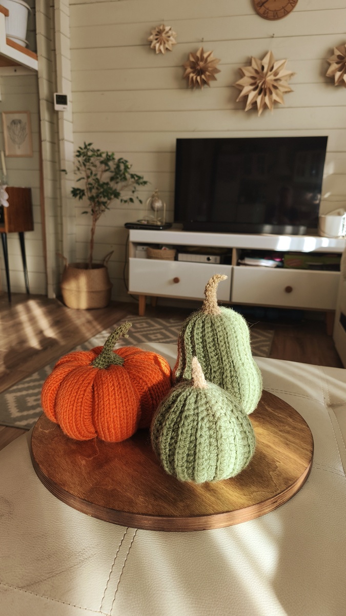Выкладываю свои очередные связанные тыквы в соц сети. Сосед: