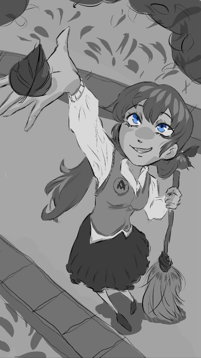 Даже в таком простом деле, как уборка, можно найти момент для красоты. Вместо того чтобы просто смести осенний лист, Либрия-тян дарит ему последний полёт. Именно в таких мелочах и раскрывается тема 10-го дня инктобера — Sweep (подметать). Автор арта: @SomNambulit