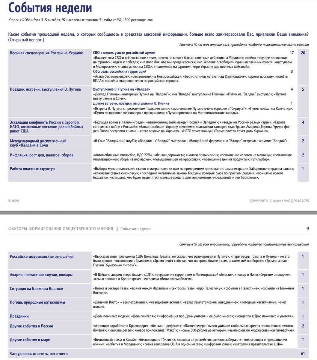 Π Π΅Π·ΡΠ»ΡΡΠ°ΡΡ Π΅ΠΆΠ΅Π½Π΅Π΄Π΅Π»ΡΠ½ΠΎΠ³ΠΎ ΠΎΠΏΡΠΎΡΠ° 3 β 5 ΠΎΠΊΡΡΠ±ΡΡ 2025 Π³ΠΎΠ΄Π°. ΠΠΎΠ»Π½ΡΠΉ Π²ΡΠΏΡΡΠΊ: fom.ru #Π΄ΠΎΠΌΠΈΠ½Π°Π½ΡΡ #Π€ΠΠΠ½ΠΈΠ±ΡΡ π± Π€ΠΎΠ½Π΄ ΠΠ±ΡΠ΅ΡΡΠ²Π΅Π½Π½ΠΎΠ΅ ΠΠ½Π΅Π½ΠΈΠ΅
