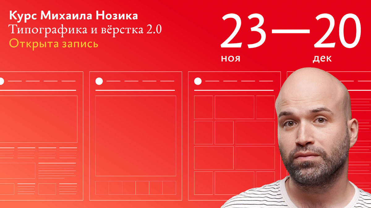 Открыта запись на курс Михаила Нозика «Типографика и вёрстка 2.0». Курс длится четыре недели и пройдёт с 23 ноября по 20 декабря в дистанционном формате.