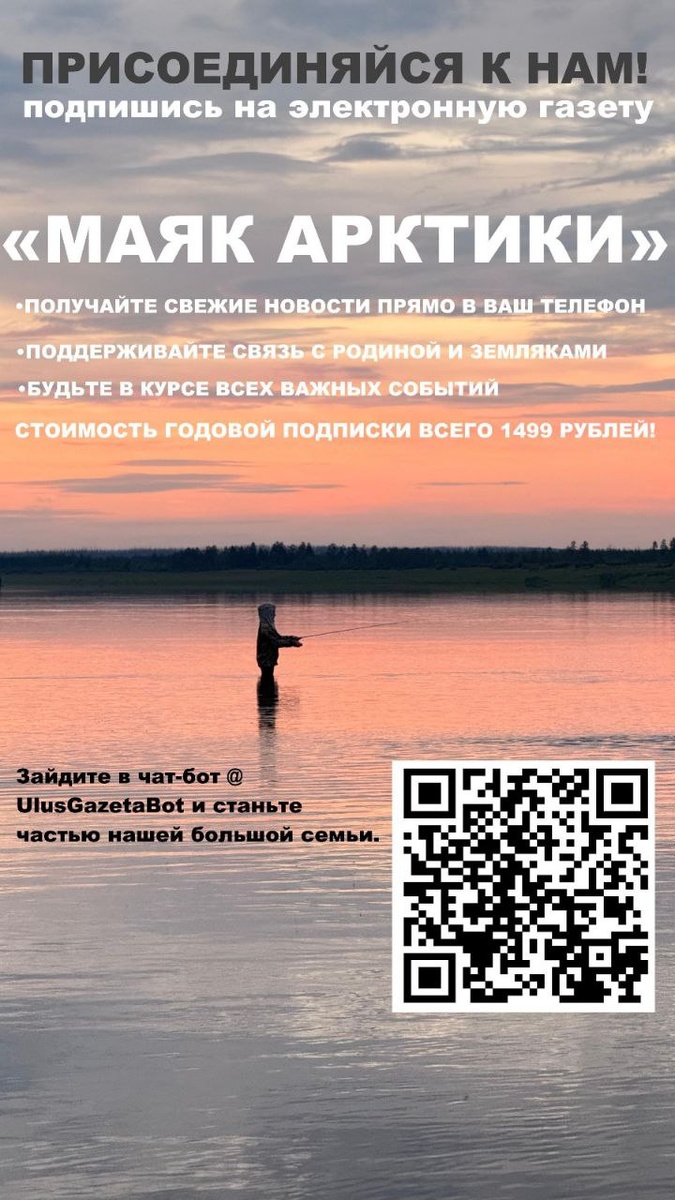 🥰👋Привет дорогие земляки! 👀Это ваша улусная газета булунчан – "Маяк Арктики". Сегодня мы начинаем новый этап нашего пути – выпускаем электронную версию издания 📲. Теперь наша общая жизнь, события, переживания и успехи будут собраны именно тут, в "Маяке Арктики" Подписавшись на наш чат-бот @UlusGazetaBot, всего двумя нажатиями кнопки вы окажетесь рядом с нами, будете чувствовать себя частью большого сообщества булунчан 👩🏽🤝👨🏼👭🏼👬🏼 💸🤏Годовая подписка обойдется вам всего в 1499 рублей. Пусть "Маяк Арктики" станет вашим верным спутником и источником вдохновения ❤️ Всегда ваши, редакция "Маяк Арктики" Делитесь сообщением с друзьями и близкими булунчанами! ❤️🔥 ➖➖➖➖➖➖➖➖➖➖ 😘 Нас читают умные люди. Маяк Арктики