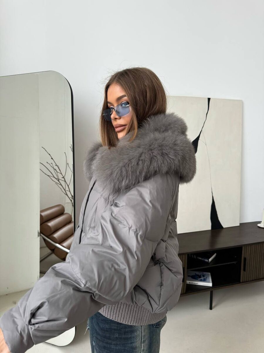 Стильная курточка без капюшона ( мех натуральный наполнитель пух )