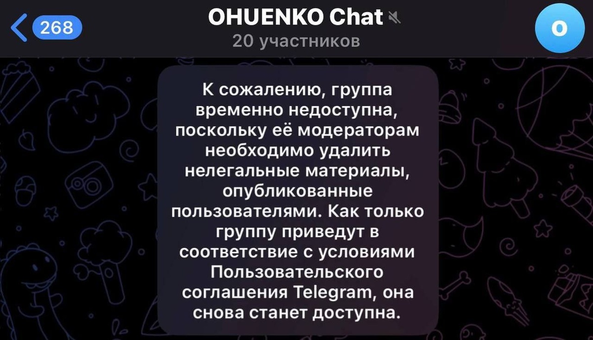 ✨OHUENKO — Всё? ❌Ночью был заблокирован чат креативного директора Telegram. Это временная блокировка, и после прохождения модерации чат будет разблокирован!