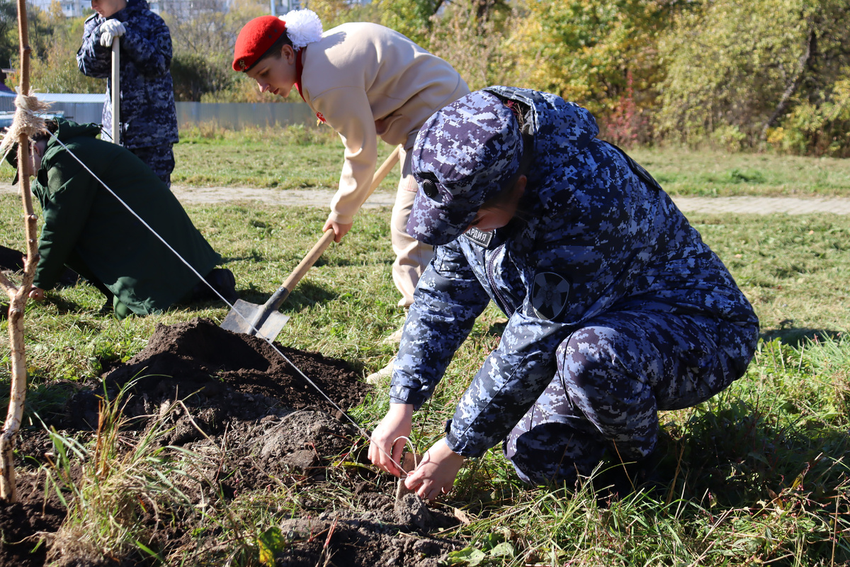 В рамках акции «Посади дерево» военнослужащие и сотрудники регионального управления Росгвардии приняли участие в высадке деревьев в парке «Берёзовая роща» Южного округа Хабаровска.