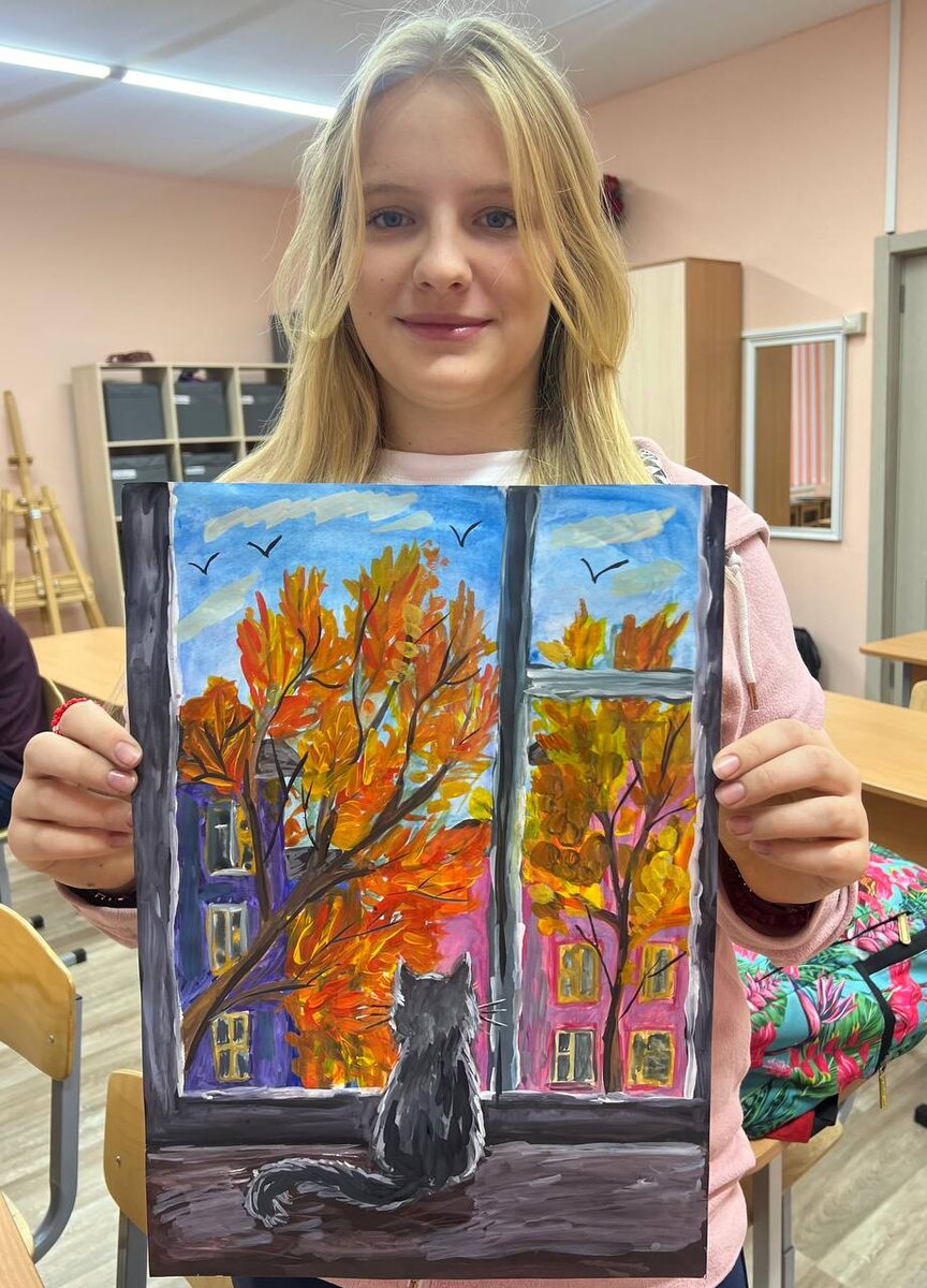 Наша художественная коллекция продолжает расти и радовать глаз! Сегодня наши талантливые ученицы пополнили её двумя новыми шедеврами, достойными восхищённых взглядов и искренних похвал. Их творчество словно солнечный лучик вдохновения, озаряющий мир искусства! 🎨✨