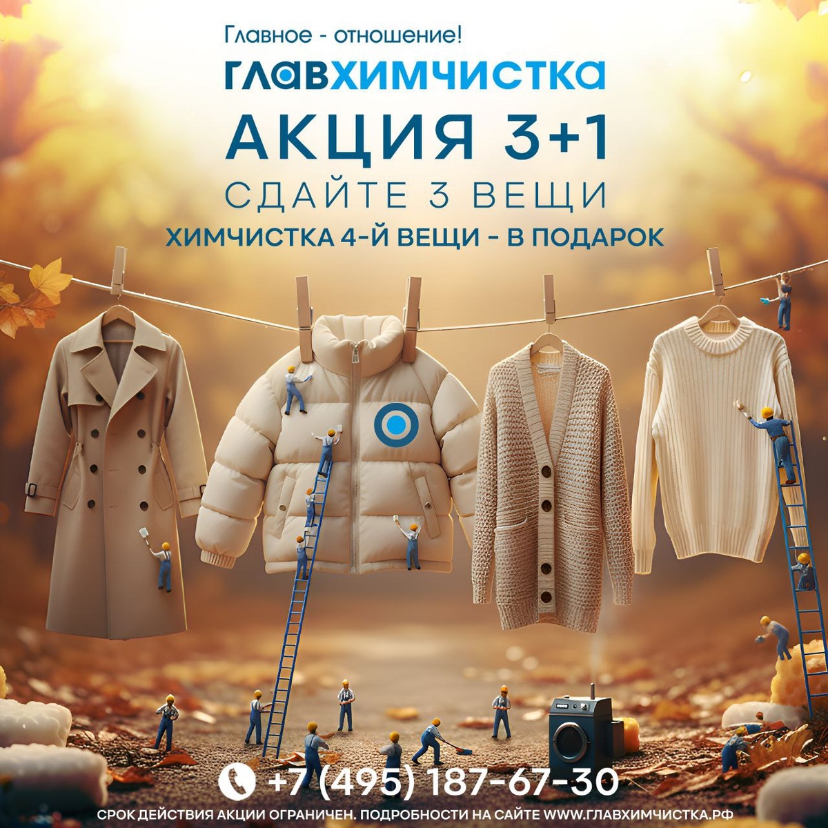 🔥 АКЦИЯ «3+1» 🔥 Осень – время обновить гардероб и подготовить любимые вещи к новому сезону! А мы поможем вам в этом с выгодой! 🍂 С 10 октября по 11 ноября 2025 года в пунктах приема: 📍 Зиларт 📍 Маломосковская 📍 Видное 📍 Сердце Столицы 📍 Хорошевка Действует спец-предложение: Принесите на химчистку 4 вещи одновременно и получите ЧИСТКУ 4-Й ВЕЩИ В ПОДАРОК! 🎁 Как это работает? • Сдаете сразу 4 вещи в одном заказе. • Самая низкая по стоимости химчистки вещь из этого заказа очищается для вас АБСОЛЮТНО БЕСПЛАТНО! 🤩 Идеальный шанс привести в порядок пальто, костюмы, платья и всё, что требует профессионального ухода! ✨ Не упустите возможность сэкономить и встретить осень во всеоружии! Ждём вас в наших пунктах приема! #химчистка #акция #зиларт #маломосковская #видное #сердцестолицы #хорошевка #осень2025