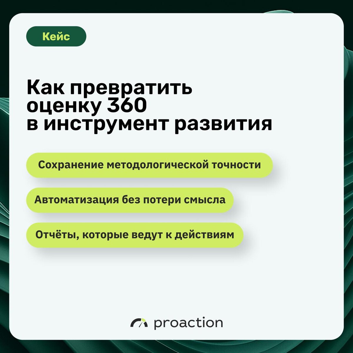 , ΠΎΡΡΡΡΡ. βΊ Π‘ΠΎΠΊΡΠ°ΡΠΈΠ»ΠΈ ΡΡΠΎΠΊΠΈ ΠΎΡΠ΅Π½ΠΊΠΈ Π² 2 ΡΠ°Π·Π°, HR ΡΠΌΠΎΠ³Π»ΠΈ Π±ΡΡΡΡΠ΅Π΅ ΠΏΠ΅ΡΠ΅ΠΉΡΠΈ ΠΊ ΡΠ°Π·ΡΠ°Π±ΠΎΡΠΊΠ΅ ΠΏΡΠΎΠ³ΡΠ°ΠΌΠΌ ΡΠ°Π·Π²ΠΈΡΠΈΡ. βΊ ΠΠΎΠ±Π°Π²ΠΈΠ»ΠΈ Π² ΠΎΡΡΡΡΡ ΠΏΠΎΠ½ΡΡΠ½ΡΠ΅ ΡΠ΅ΠΊΠΎΠΌΠ΅Π½Π΄Π°ΡΠΈΠΈ ΠΈ Π·ΠΎΠ½Ρ ΡΠΎΡΡΠ°, ΡΡΠΎΠ±Ρ ΠΏΡΠ΅Π²ΡΠ°ΡΠΈΡΡ Π΄Π°Π½Π½ΡΠ΅ Π² ΠΎΡΠ½ΠΎΠ²Ρ Π΄Π»Ρ Π΄Π΅ΠΉΡΡΠ²ΠΈΠΉ. Β«Proaction.pro ΠΏΠΎΠΌΠΎΠ³ ΡΠΎΡ