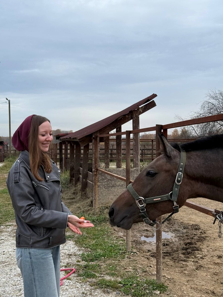 Вы не представляете, какой сегодня был прекрасный день! Мы с Дашей ездили на конюшню к подруге нашей студии Полине! 🙏🥰 И знаете, что самое крутое? У Полины есть своя лошадь! Мечта с детства, которая стала реальностью. Она занималась конным спортом и, несмотря на негодование родителей, сделала это — купила себе лошадь! Говорит, что это как ребёнок для неё. ❤️ А еще мы узнали столько всего, что голова кругом! Делимся с вами: ➖ Колики = опасно! У лошадей НЕТ рвотного рефлекса. Если случились колики и сразу не помочь — пиши пропало. Это очень серьезно. ➖ Как спят лошади? По-настоящему, в глубоком сне, они спят ЛЕЖА всего 3-3,5 часа! Остальное время — стоя, дремая. ➖ Копыто — это бывшие пальцы! Да-да, это эволюционный нарост. Раньше у них были пальцы, а теперь — вот такое прочное копыто. ➖ Гриву и хвост можно дергать? Оказывается, ДА! Там нет нервных окончаний, и лошадь ничего не чувствует. А нужны они, чтобы отмахиваться от мух. И природа умно придумала: если зацепится за куст, то