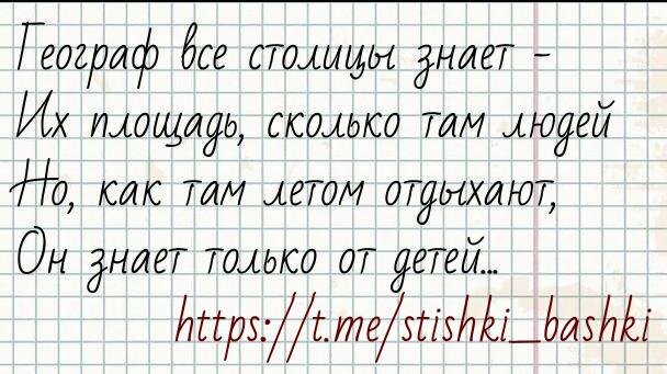 Про Географию #деньучителя #стишкиизбашки Стишок каждый день для настроения @stishki_bashki 📹 - видеостишки тут 👈 🙊 - а тут можно комментировать 👈 Поделитесь стишком с друзьями