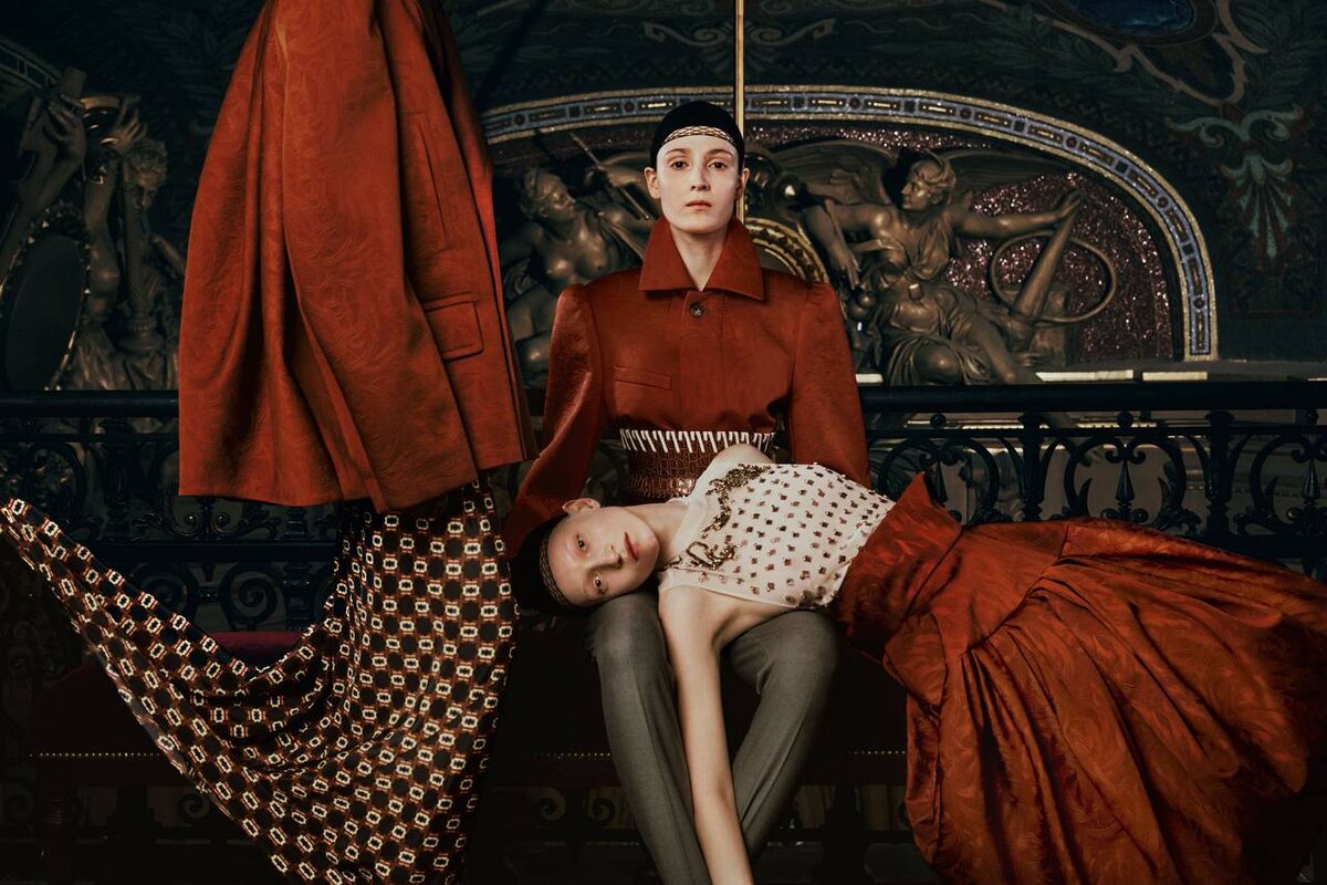 Первое видение Жюльена Доссены для Dries Van Noten заключается не в блестящей рекламной кампании с большими деньгами, а в чем-то более беспокойном и интригующем. Проект, снятый Карлин Джейкобс, воспринимается как редакционный эксперимент: роскошные интерьеры, сюрреалистические постановки и модели, которые изгибаются, отражаются и множатся, создавая сказочные композиции.