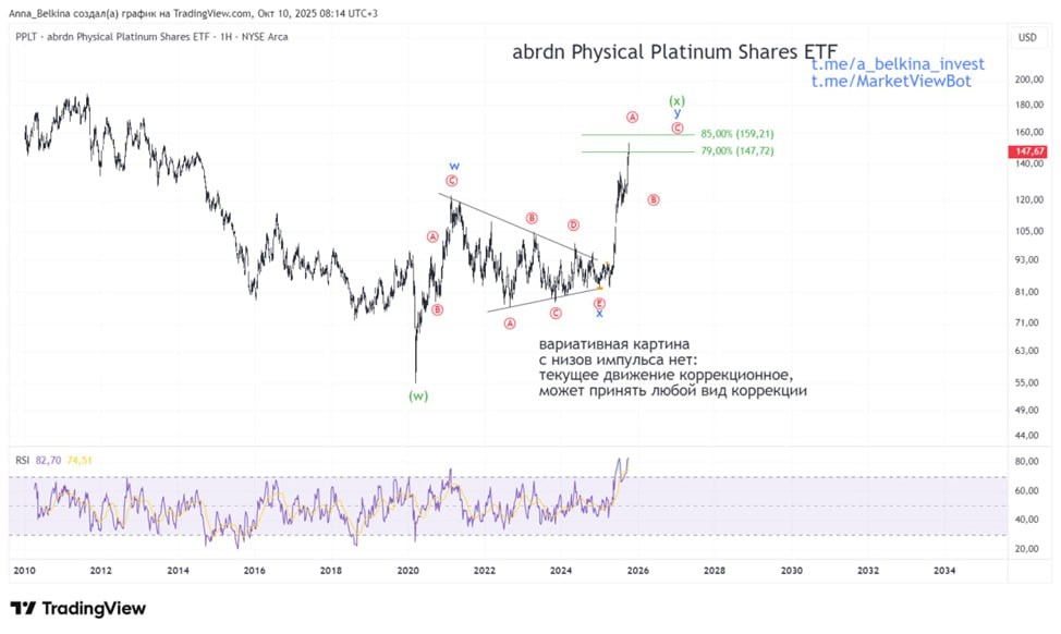 На платине продолжается рост, в развитии волна [A] of y of (x).
