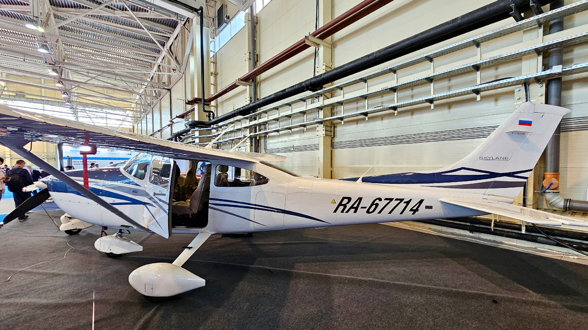 Cessna 182 Skylane, вариант 180 модели с носовой опорой, в линейке моделей знаменитой американской компании следующая после 172-й. Самолет выпускается с 1956 года с перерывами в 1985-96 г. г. и с 2012 по 2015 г. г. За это время выпущено более 23 000 самолетов различных модификаций. От 172 модели отличается более просторным, обтекаемым фюзеляжем и более мощным двигателем. Визуально отличить проще всего по характерной, более стремительной форме окна за дверью.