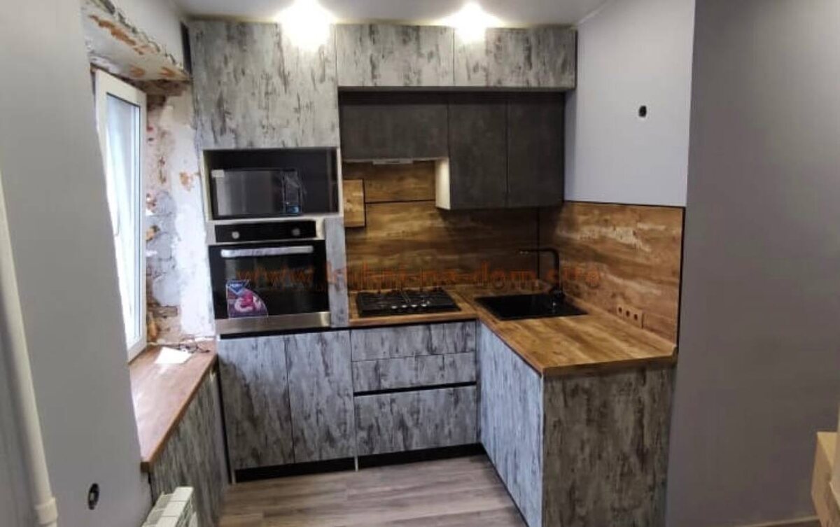 Кухня двухъярусная под дерево в стиле лофт MADERA Кухонный гарнитур TIRAMISU в стиле лофт был изготовлен по индивидуальному проекту для установки в квартире в ПГТ Пролетарский в Московской области. Фасады гарнитура изготовлены из МДФ в плёнке ПВХ в цвете Adilet SE-003. Отличительной чертой кухни является имитация дерева на фасадах гарнитура, а фартук с рисунком дерева дополняет эту эстетическую картину. Столешница изготовлена от производителя СОЮЗ в цвете Дуб Юкон 058 М, тоже под дерево. Заказать проект кухни или записаться на замер kuhni-na-dom.site