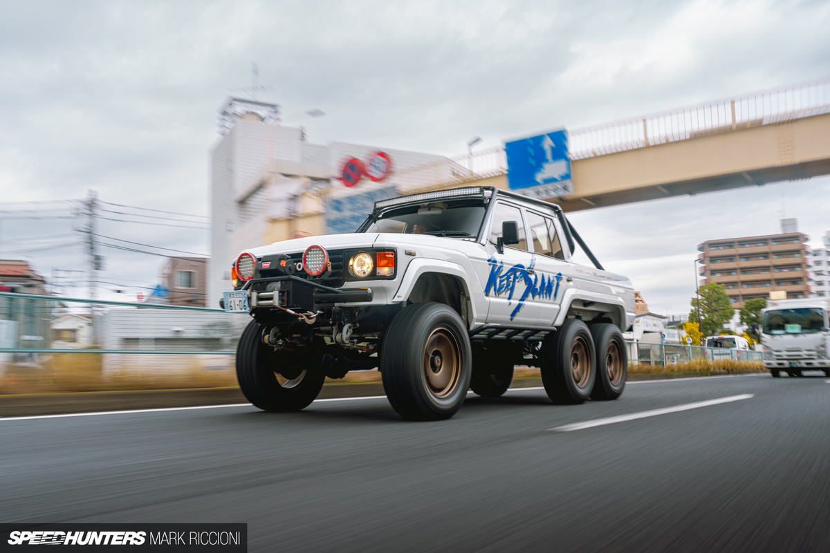Когда машина обретает культовый статус в народе, расцветает и ее тюнинг. Юката Касахо высказался тут сполна. Он превратил один из лучших в мире внедорожников в настоящий монстр с колесной формулой 6x6. Машина получила блокируемые дифференциалы и выхлоп, выведенный над крышей.