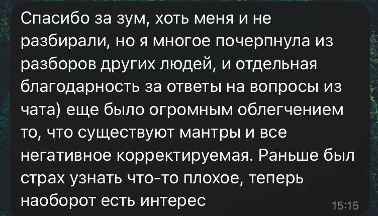 Открытые Астро-Разборы прошли мощно! Те, кто были в зуме – подтверждают, что было полезно, даже если разбирал не их карту: по разбору чужой карты они смогли анализировать свои показатели 💫 Больше открытых разборов не будет в ближайшие месяцы. Будут только закрытые разборы – для тех, кто записался в анкету предзаписи на мой новый курс "ПРОБУЖДЕНИЕ: улучшение всех сфер жизни с помощью ведической астрологии" 🔥 Если хотите попасть на закрытые разборы – сделать это можно только через анкету. Пока анкету опубликовал только в канале разборов, у их участников есть преимущество занять лучшие условия) Кстати, помимо доступа к закрытым разборам, те, кто заполнят анкету предзаписи, получат от меня эксклюзивные материалы, которые больше нигде получить невозможно: 1. Видео мастер-класс "Какой день будет благоприятным для свадьбы, суда, начала учебы, бизнеса, лечения и тд. А в какой день - категорически нельзя этого делать?" 2. Разбор в сторис "Астрологии миллионеров" - какие закономерности я