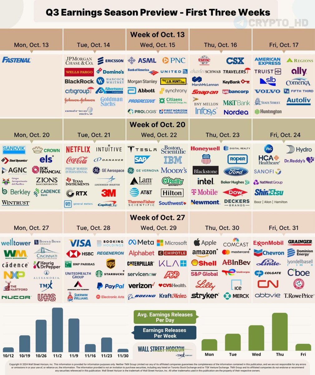 📌🇺🇸 На следующей неделе в США начнется новый сезон корпоративных отчетностей (14 октября