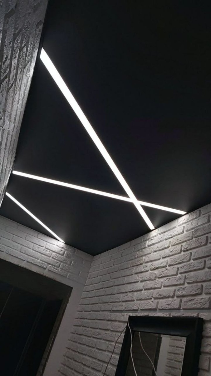 Чёрный натяжной потолок — это нестандартное, но всё более популярное дизайнерское решение. Хотя традиционно его ассоциируют с барами и клубами, сегодня он всё чаще появляется и в жилых интерьерах. Многие дизайнеры сознательно ломают стереотипы, доказывая, что при грамотной реализации чёрный потолок может стать изюминкой пространства, а не его утяжелителем. Да, чёрный цвет действительно «давит» — особенно в маленьких комнатах или при недостатке света. Белый потолок визуально расширяет пространство и добавляет лёгкости, тогда как чёрный, на первый взгляд, делает его ниже и мрачнее. Однако именно этот контраст и создаёт драматический эффект, который при правильной подаче выглядит стильно, современно и даже роскошно. Особенно эффектно смотрится глянцевый чёрный натяжной потолок — его зеркальная поверхность отражает интерьер, добавляя глубину и объём. Такой потолок буквально «растворяется» в пространстве, особенно при удачном освещении. Интересным приёмом является комбинация чёрного и бел
