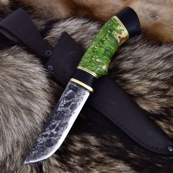 Нож Грибник, сталь Ручная ковка 9ХС, стабилизированный кап клена
