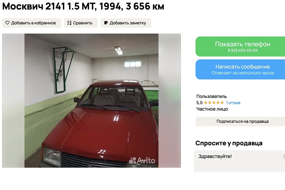 В Москве продают «Москвич-2141» 1994 года с минимальным пробегом — авто простояло без движения