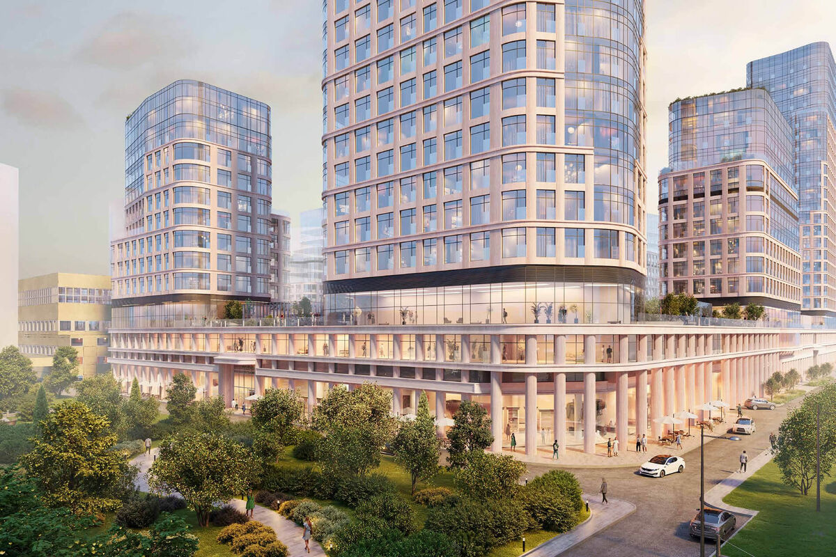 Архитектурную композицию составят 8 корпусов высотой от 12 до 55 этажей. Во всех квартирах предусмотрены высокие потолки — от 3,4 до 4 метров на верхних уровнях. Старт продаж ожидается в ближайшее время.