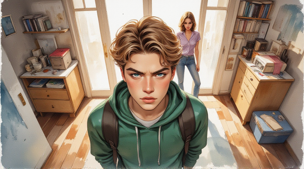 Он ушёл в комнату, хлопнул дверью.