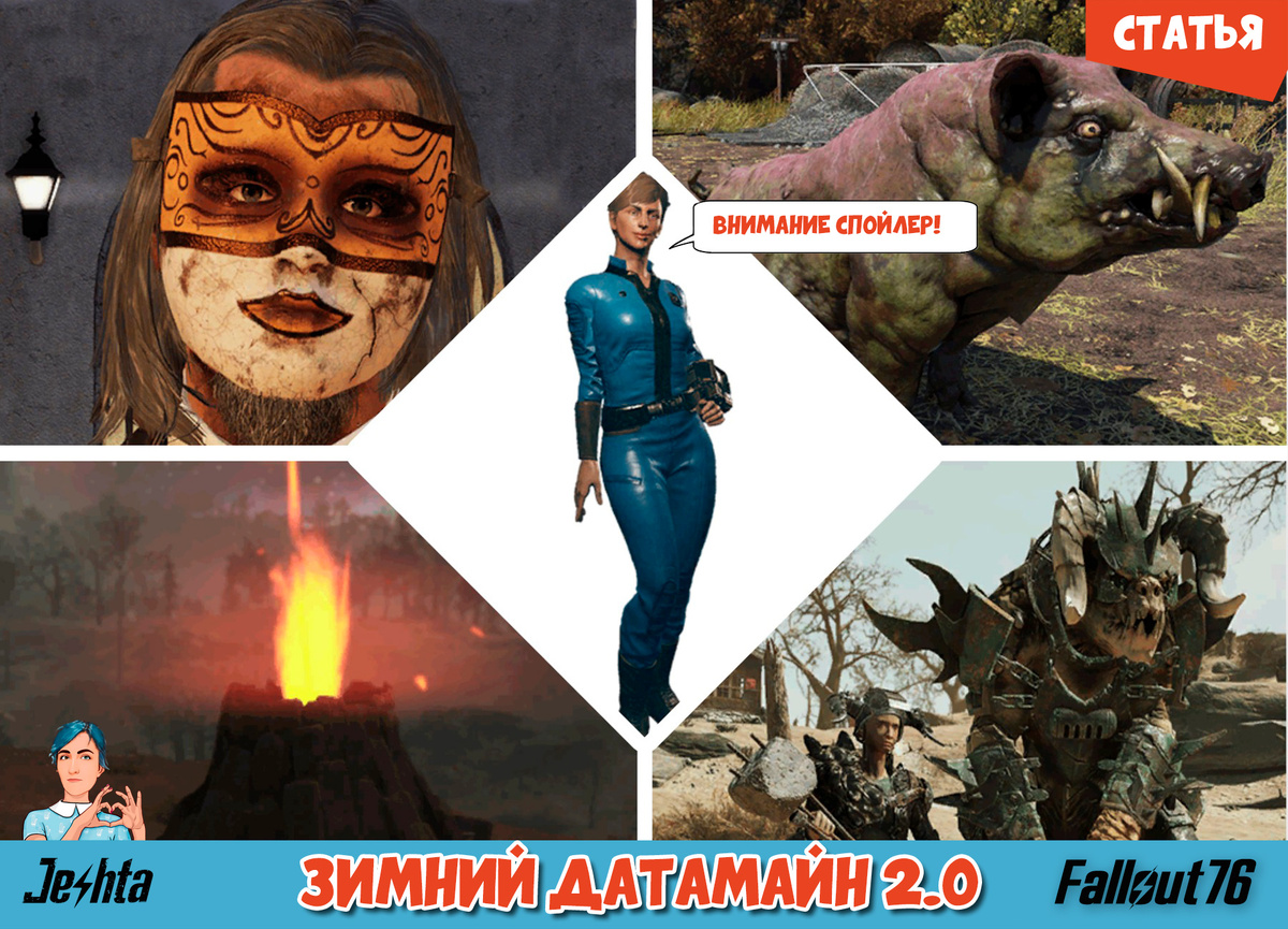 Еще немного датамайна богу датамайна! Первая и самай большая часть зимнего датамайна тут: Подробное описание обновления Burning Springs тут: Стрим с места событий тут: Меня зовут Лена Джешта, и я снова здесь, чтобы поделиться с вами зимними находками с тестовых серверов. ⚠️ Внимание: всё, о чём будет рассказано в этой статье, относится к потенциальным новшествам, обнаруженным в тестовой версии Fallout 76. Нет уверенности, что они появятся в финальной версии игры в том виде, в каком мы их видим сейчас. 🔔 Внимание, спойлеры! Если вы предпочитаете самостоятельно открывать новые предметы и механики в момент официального обновления, возможно, вам следует пропустить эту статью. Не испугались? Готовы узнать о радиоактивных загадках и зимних открытиях? ☢️ (часть 2) Маска общества «Белой перчатки» из Fallout New Vegas Доспехи когтя смерти ;) Вот такой рад-порось теперь сможет жить в вашем КАМПе. У него есть отличная крытая лежанка: Коллектор Бродильный чан Ремонтный верстак прямиком из New Ve