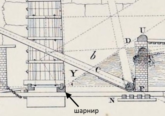 Этот "кусок дерева" был, своего рода, шарниром, который установили на ребре нижней грани обелиска. Так описал его капитан "Луксора" Вернинак: