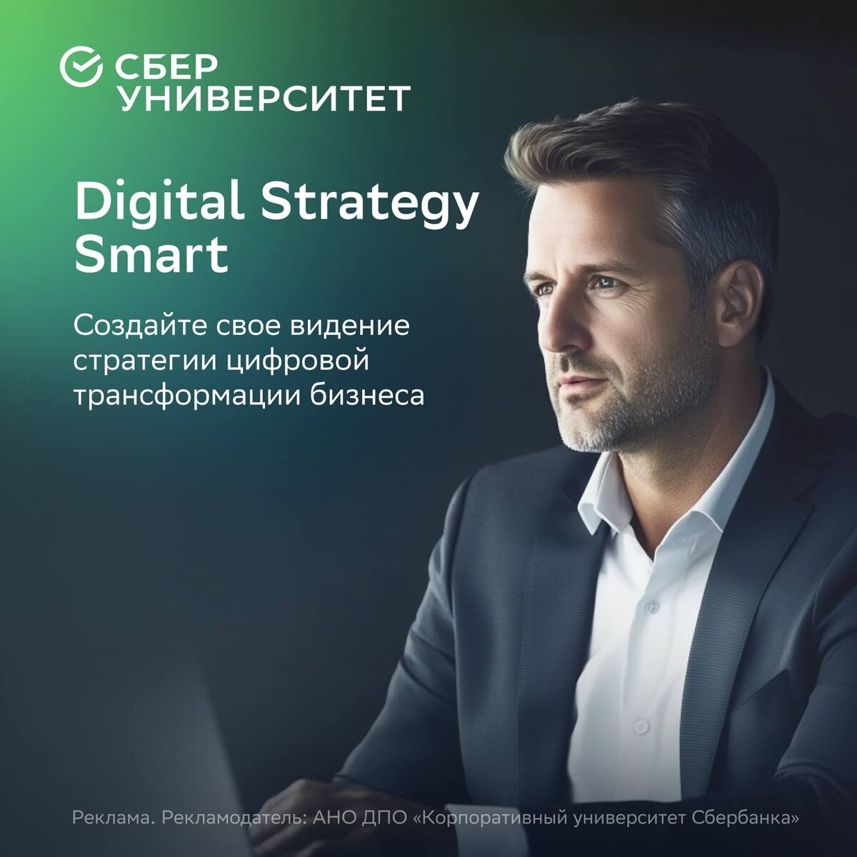 Заголовок: Пройдите обучение Digital Strategy Smart и укрепите позиции своего бизнеса на фоне цифровых изменений Тексты: Бизнес сталкивается с серьёзными вызовами цифровой трансформации, и нехватка знаний может привести к отставанию от конкурентов. Программа Digital Strategy Smart предназначена для владельцев бизнеса, топ-менеджеров и руководителей. Она длится 4 дня и охватывает ключевые аспекты: первый день - тренды инновационной экономики, второй - цифровые технологии, третий - клиентоцентричность и бизнес-модели, четвёртый - Agile. Ваши наставники - топ-менеджеры Сбера и эксперты в области цифровой трансформации. Старт программы 16 октября в Сочи, отель Mantera Supreme, и 31 октября в Горно-Алтайске, курорт «Манжерок». Запишитесь на Digital Strategy Smart, чтобы обеспечить своему бизнесу конкурентное преимущество. ────────── ⚡️Важные новости – без лишнего шума!⚡️ Подпишись на канал и получай только суть: оперативно, чётко, по делу! 👉 ИнфоСплетник | @infospletnik