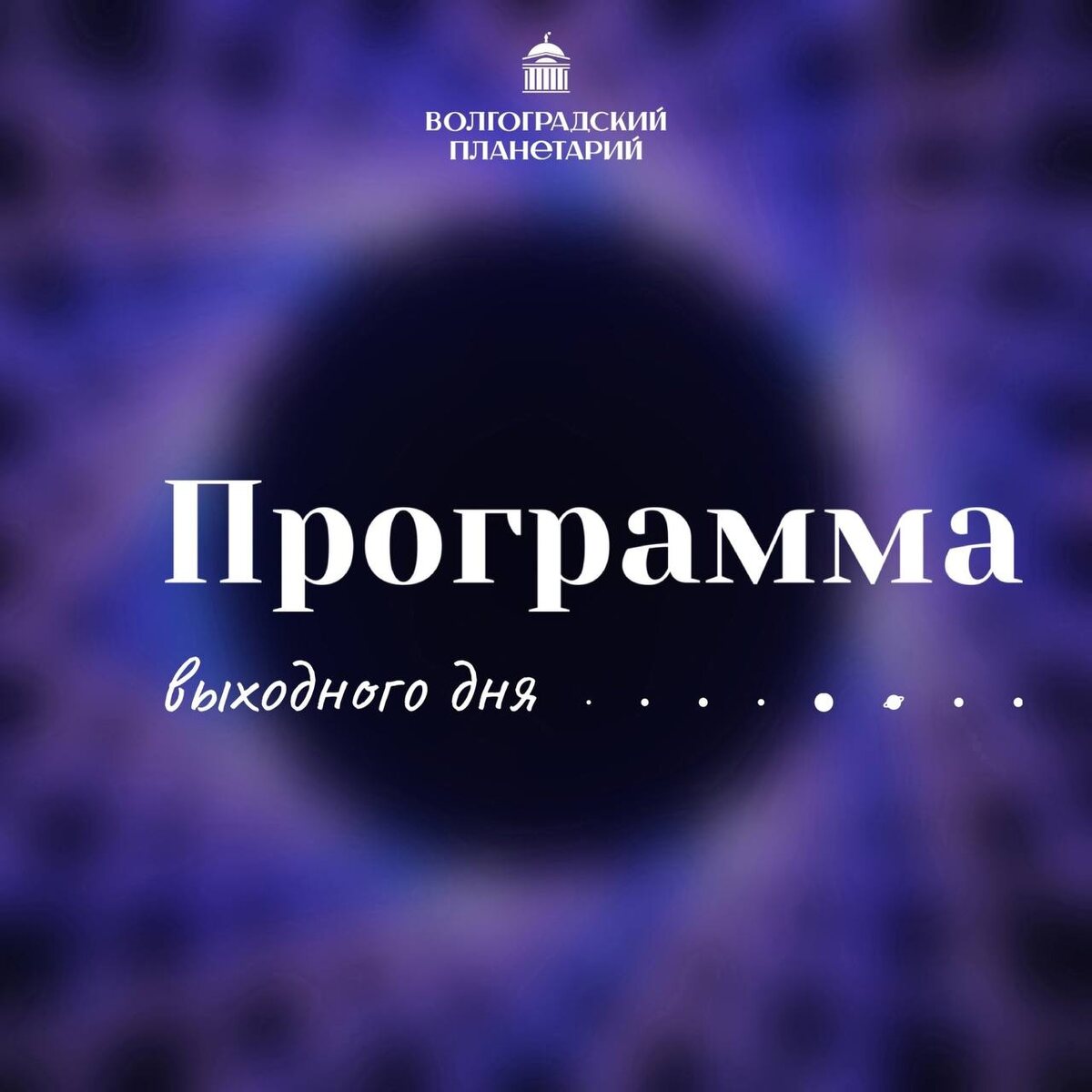 ............................................... #ПрограммаВыходногоДня 11 - 12 октября ............................................... ㅤ ㅤ 🖇ПРЕМЬЕРЫ И НОВИНКИ: ㅤ По записи 8 (8442) 24-18-72: ㅤ Вечерние наблюдения 11 октября 20:30 12 октября 20:30 ㅤ Дневные наблюдения 12 октября 11:00 и 15:00 ㅤ ㅤ ㅤ ㅤ ㅤ 🖇ПРОГРАММЫ ДЛЯ ДЕТЕЙ: ㅤ Полнокупольная программа "Полярис & Путеводные звезды" 11 октября 10:00 ㅤ Лекция "Удивительные открытия зайчонка Лапика" 11 октября 12:00 ㅤ Лекция "Звездочет и его друзья" 12 октября 10:00 Комбинированная программа "Люсия: секрет падающих звезд" 12 октября 12:00 ㅤ ㅤ ㅤ ㅤ ㅤ 🖇ПРОГРАММЫ ДЛЯ ПЕРВОГО ПОСЕЩЕНИЯ: ㅤ Экскурсионная программа 11 октября 11:10, 13:10, 15:10, 17:10 12 октября 13:10, 17:10 Полнокупольная программа "Буран & Путеводные звёзды" 11 октября 14:00 ㅤ Лекционная программа "Вселенная: от мифов до наших дней" 11 октября 16:00 ㅤ Полнокупольная программа "Путеводные звёзды & Обитаемая Луна" 11 октября 18:00 ㅤ Лекционная программа "Поиск жизни в других