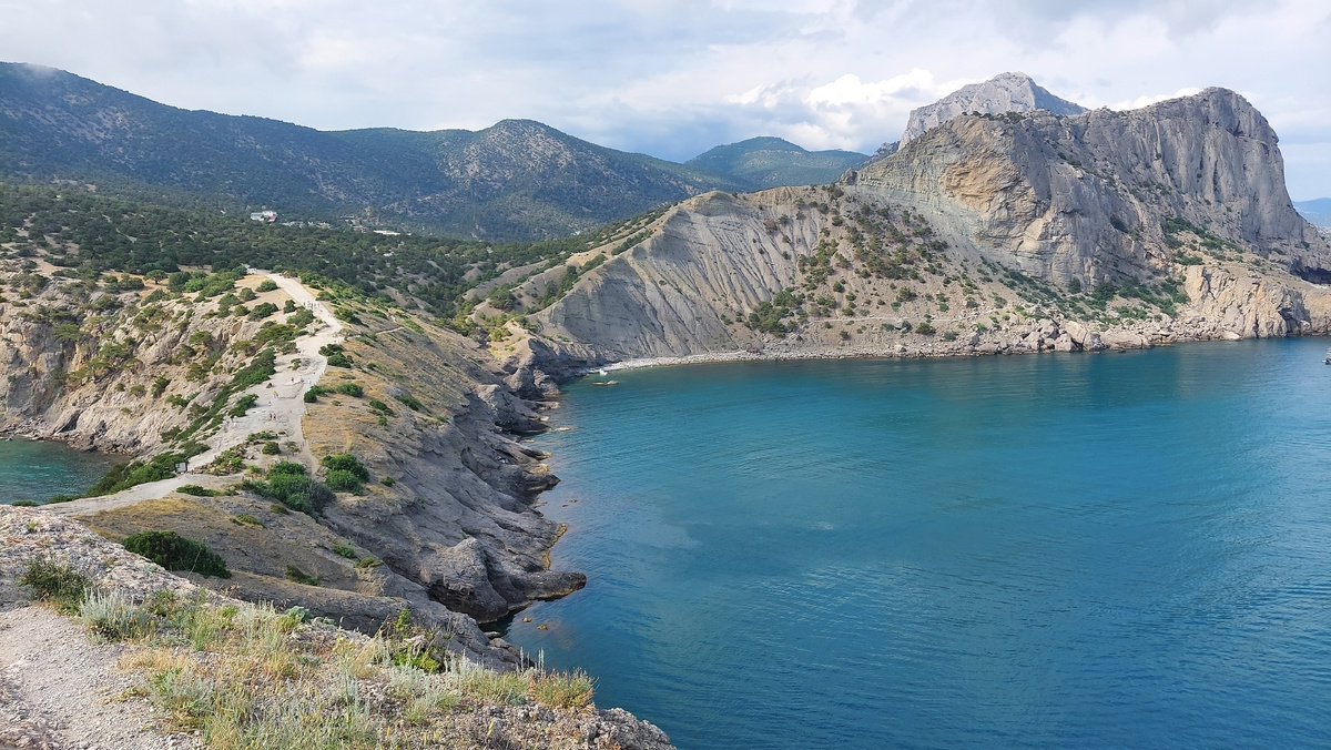 Тропа приведёт к мысу Капчик. Некоторые люди перелазят тут через символическое ограждение в виде цепочки, и идут вверх. Будьте осторожны, тут очень опасно и порывы ветра. Посмотрите видео у меня в тревлблоге, оно более информативно. Я тоже пошла через ограждение, поднялась на более менее безопасную высоту. Видела с ребёнком мужчина дальше пошёл, не советую с детьми туда лезть.