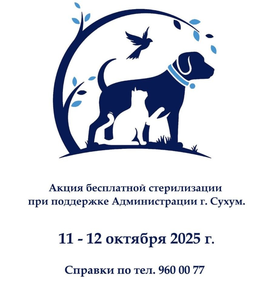 Фонд помощи безнадзорным животным «Добрый город» проводит при поддержке столичной администрации акцию бесплатной стерилизации безнадзорных и домашних животных. 📍11 октября акция стерилизации состоится в приюте для безнадзорных животных в селе Дзыгута, 🗓12 октября – в Новом районе Сухума. Апсныпресс | Instagram Facebook | Дзен ⚠️