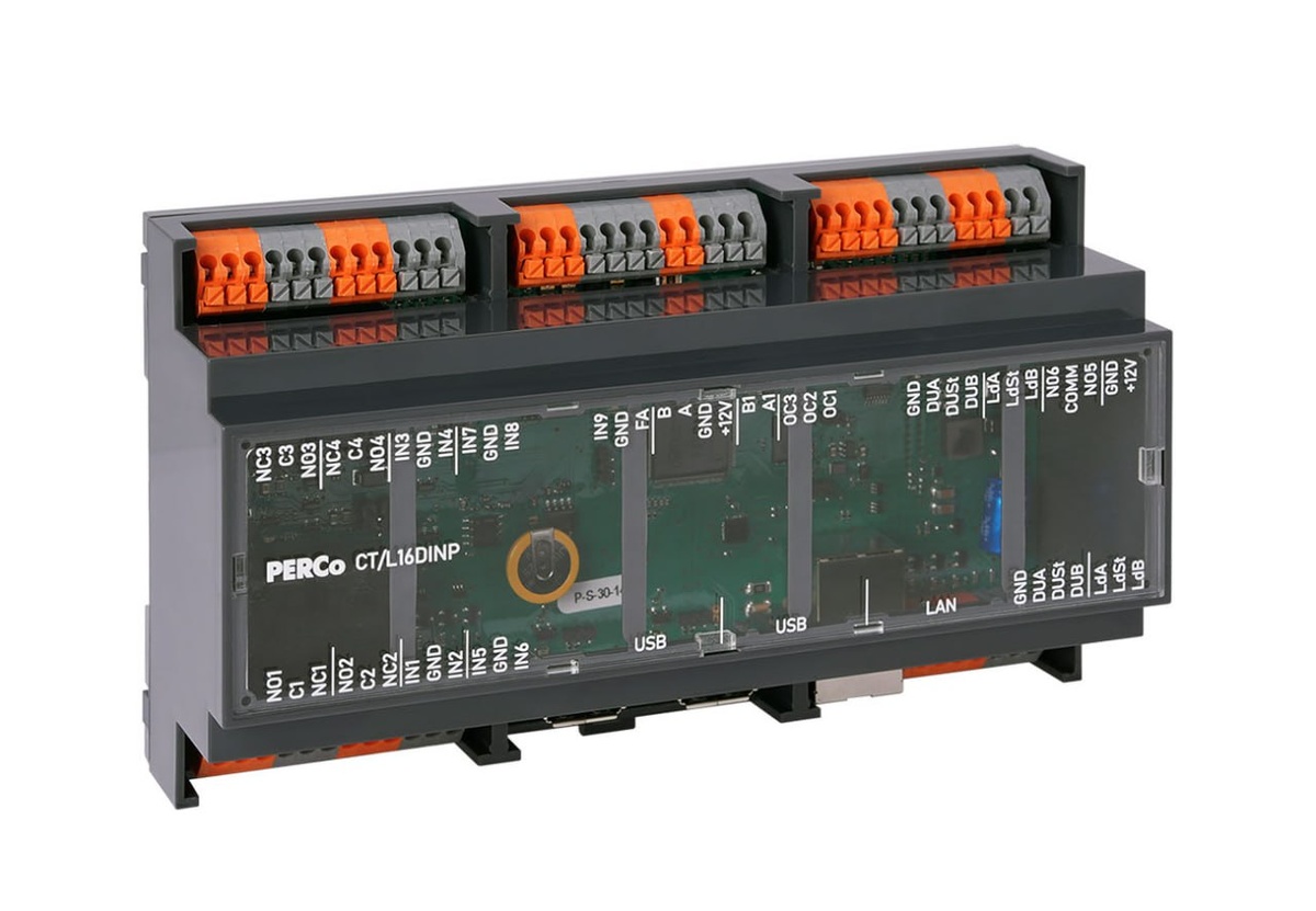 Расширение линейки универсальных контроллеров PERCo Компания PERCo объявляет о начале продаж нового универсального контроллера с расширенными возможностями, предназначенного для монтажа на DIN-рейку. Удобство монтажа и обслуживания Основным преимуществом нового контроллера является возможность установки на DIN-рейку, что обеспечивает быстрый монтаж и демонтаж, а также упрощает обслуживание оборудования. Контроллер оснащён нажимной контактной колодкой, позволяющей подключать провода без использования инструментов. Компактность DIN-реечного монтажа позволяет удобно размещать большое количество контроллеров в распределительных шкафах и щитах совместно с другим оборудованием. Расширенные возможности автоматизации Новая модель контроллера имеет увеличенное количество входов и выходов, что даёт больше возможностей для подключения дополнительного оборудования и реализации сложных схем автоматизации. Универсальный контроллер PERCo управляет двумя точками доступа в двух направлениях, включа